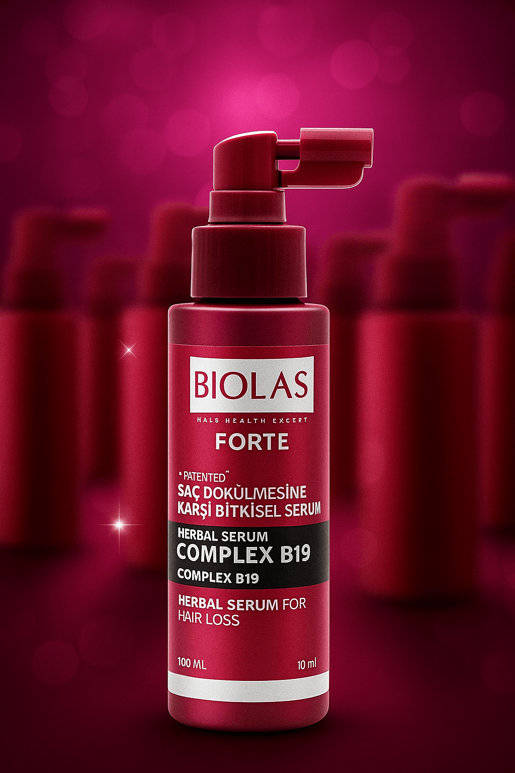 احصلي على شعر صحي، قوي وكثيف مع بخاخ BIOBLAS Forte Complex B19 التركي، المصمم خصيصًا لعلاج مشاكل تساقط الشعر وتقوية الجذور. بتركيبة عشبية طبيعية بنسبة 96% وخالية من البارابين، يمنحك عناية فعالة لفروة الرأس مع ترطيب وحماية تدوم.