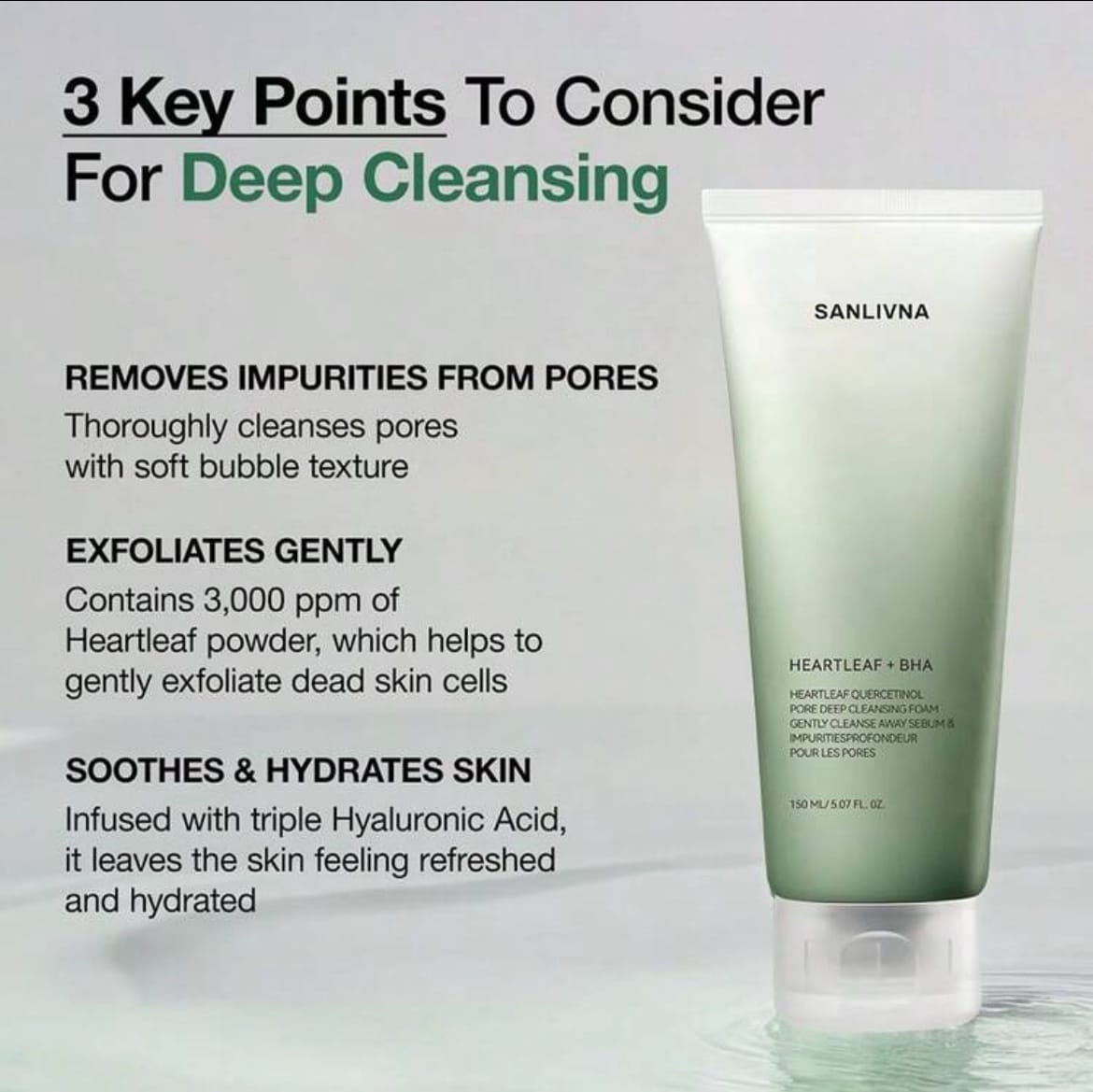 ✨ اكتشفي غسول سانليفنا الذي يجمع بين قوة تنظيف المسام بعمق ولطف العناية بالبشرة. بتركيبة غنية بمستخلص Heartleaf + BHA مع حمض الهيالورونيك الثلاثي، يمنحك بشرة ناعمة، نقية، ورطبة طوال اليوم.