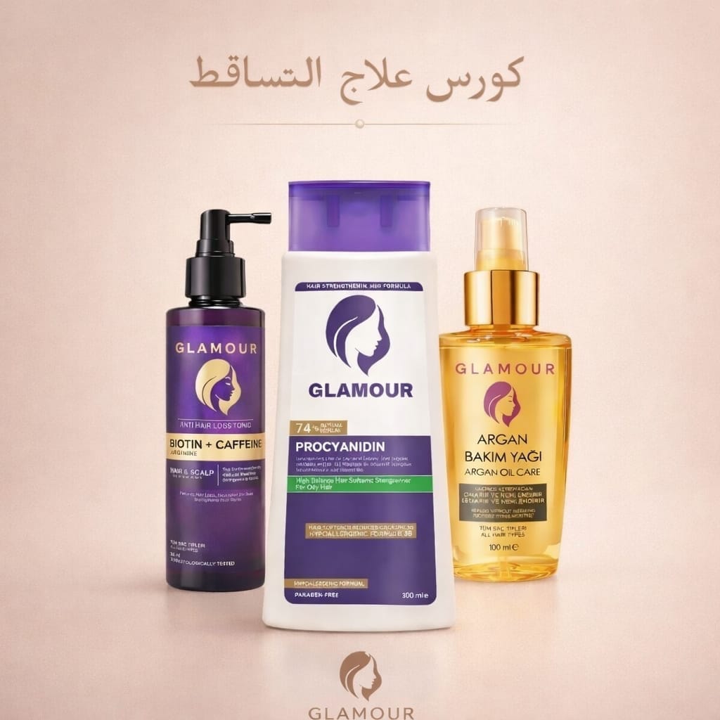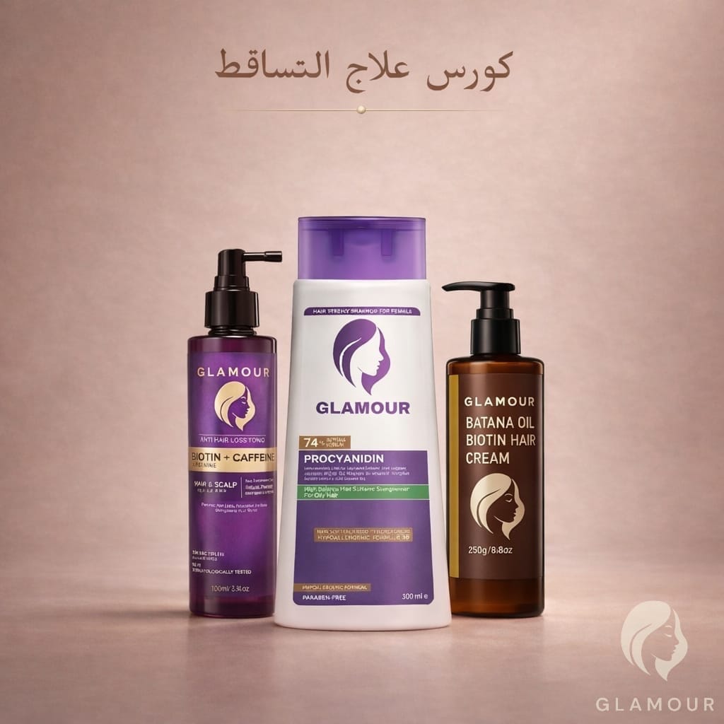 كورس علاجي شامل مصمم لعلاج تساقط الشعر، تغذية البصيلات، وتنشيط نمو الشعر الجديد، باستخدام مجموعة منتجات طبية فعّالة ومجرّبة عالمياً.