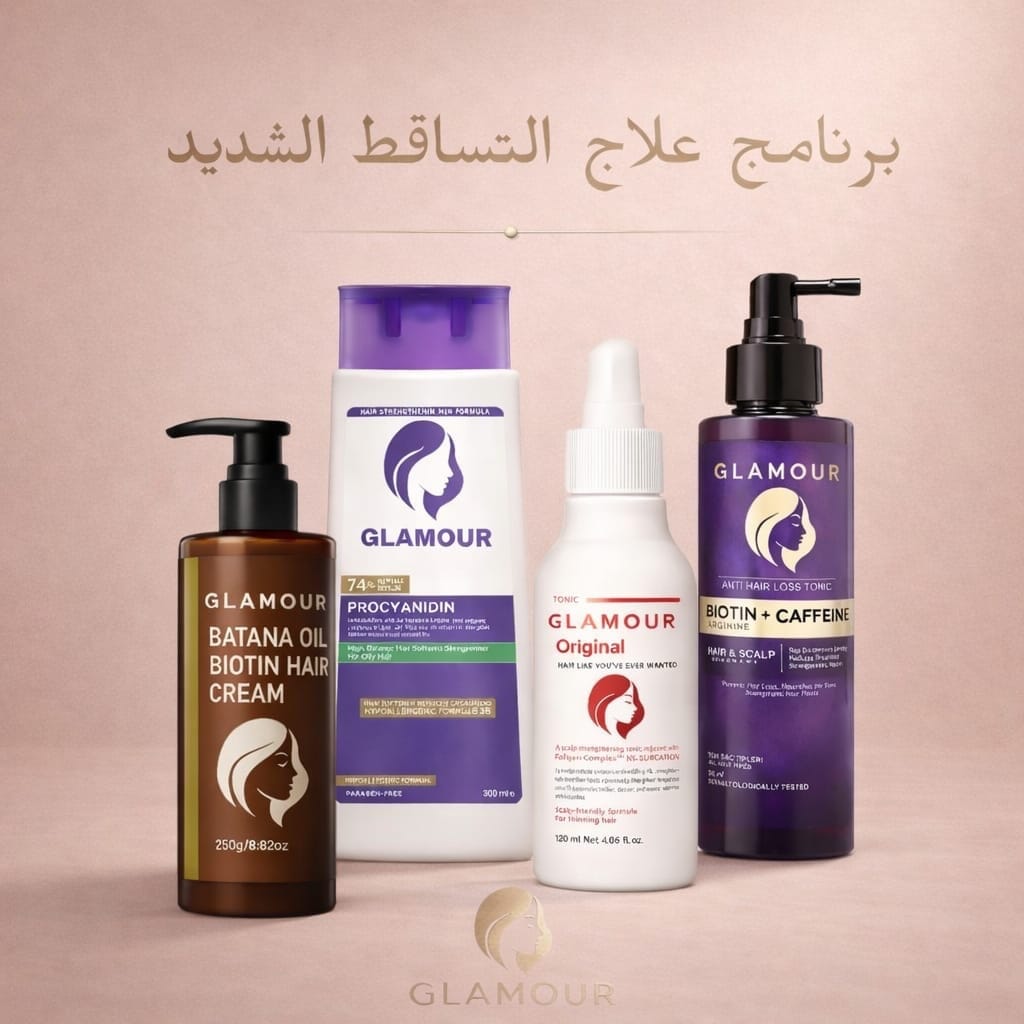 كورس علاجي شامل مصمم لعلاج تساقط الشعر، تغذية البصيلات، وتنشيط نمو الشعر الجديد، باستخدام مجموعة منتجات طبية فعّالة ومجرّبة عالمياً.